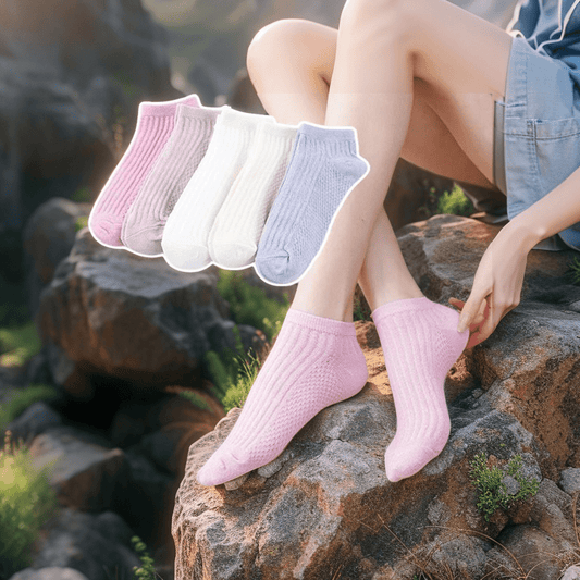 Pack de 5 pares de calcetines cortos de mujer con comodidad transpirable y corte bajo.